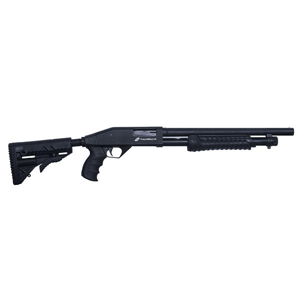 A Pump Military CBC 3.0 proporciona alto poder de fogo, rapidez de tiro e facilidade de acionamento, graças ao sistema por ação deslizante (pump).Possui câmara de 3”, capacidade de até 6 disparos e coronha Retrátil de 6 posições com sistema de amortecimento de recuo, que reduz em até 50% o impacto no dispar