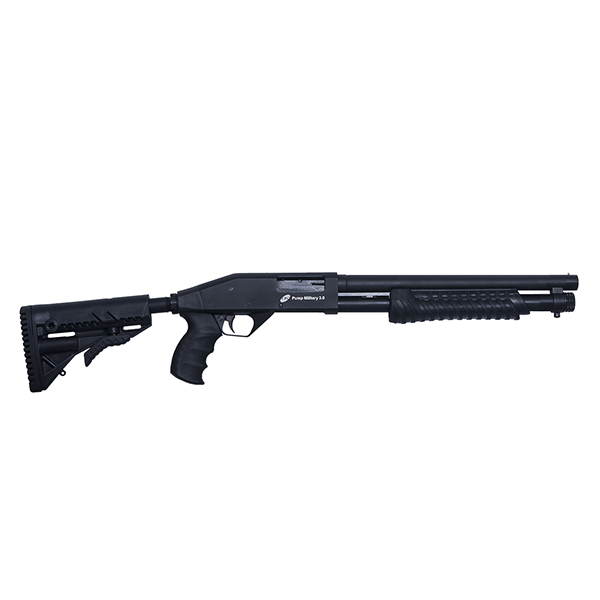 A Pump Military CBC 3.0 proporciona alto poder de fogo, rapidez de tiro e facilidade de acionamento, graças ao sistema por ação deslizante (pump).Possui câmara de 3”, capacidade de até 6 disparos e coronha Retrátil de 6 posições com sistema de amortecimento de recuo, que reduz em até 50% o impacto no disparo.